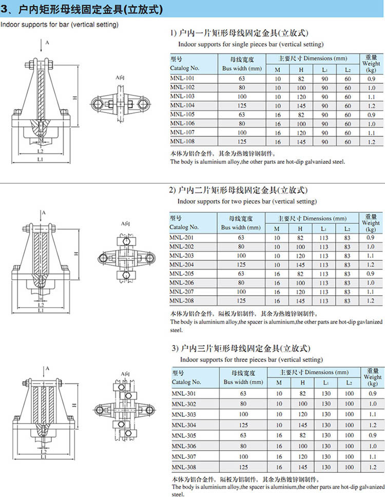 熱鍍鋅MNL-101 102 103 104戶外一片矩形母線固定金具(立放式)